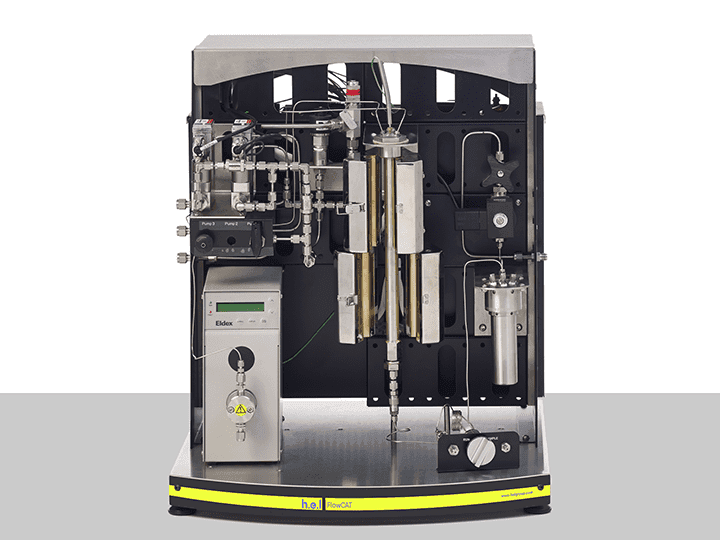 The is an automated high-pressure flow catalysis bench-top platform, designed for the development of continuous flow chemical processes. It supports both gas and liquid feeds, and so can facilitate the scale-up of both homogenous and heterogenous chemistries. It typically finds use in chemistries such as: