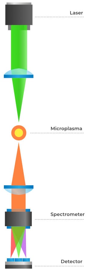 Plasma radiation is captured by the UV-NIR collecting optics and spectrally decomposed by the spectrometer