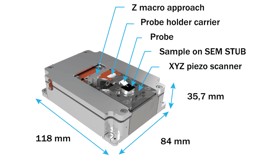 Atomic Force Microscope designed for easy integration into the Scanning Electron Microscopes. The combination of complementary AFM and SEM techniques enables you to use the advantages of both commonly used microscopy techniques.