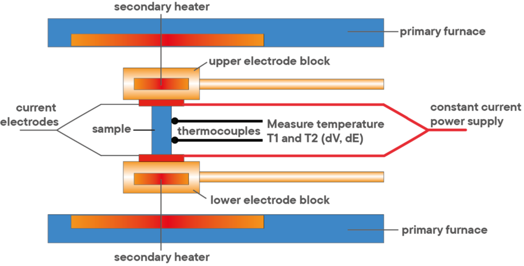 The LSR can simultaneously measure both the Seebeck coefficient and the electrical resistance (thermal conductivity and ZT using the Harman method).