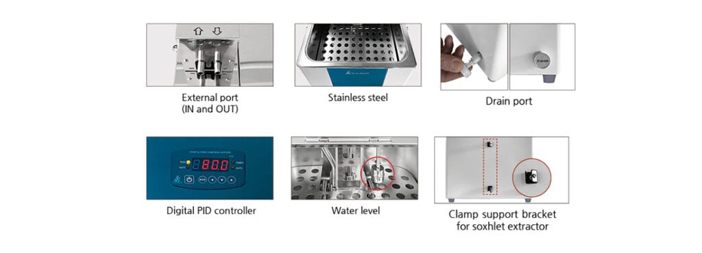 Water Bath Chamber: It is a stainless steel or other corrosion-resistant chamber that holds the water and provides insulation. The chamber is designed to withstand high temperatures and is often insulated to minimize heat loss.