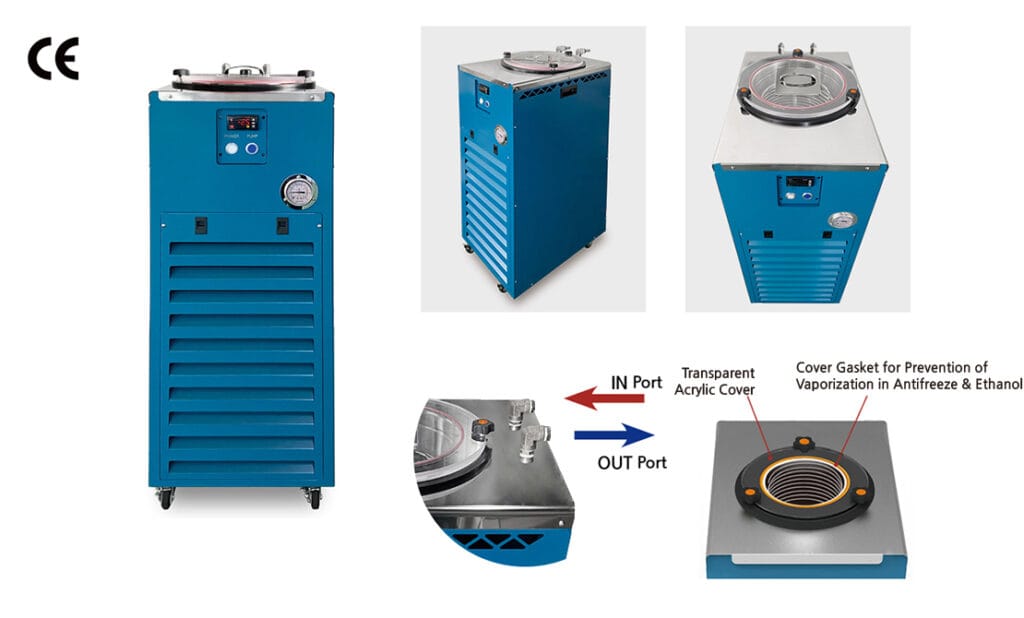 A recirculating chiller, also known as a circulating chiller or recirculating cooler, is a refrigeration system used to provide precise temperature control and cooling for various laboratory applications. It is commonly used in scientific research, analytical chemistry, biotechnology, and other fields where temperature-sensitive equipment or processes require cooling.